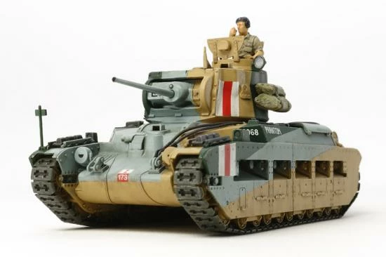 This is a 1/48 scale plastic assembly model of the British Matilda previously available in 1/35 scale. Historical background: The Matilda was developed as a heavily armored infantry tank and was one of the British Army’s main tanks in North Africa during WWII. The Matilda swept aside opposing Italian tanks and was respectfully called the “Queen of the Desert” by German forces. During Operation Battle axe to lift the siege of Tobruk in June 1941, German forces famously used their 88mm AA guns in the anti-tank role as they were the only effective counter against Matildas.