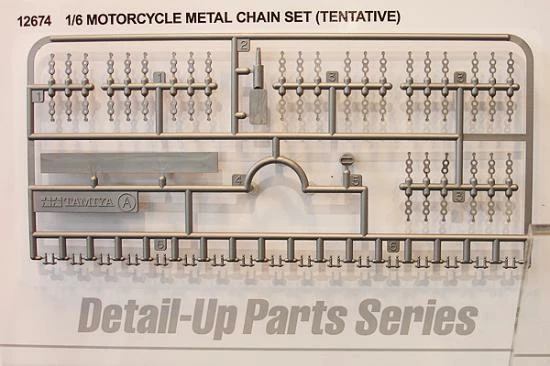 This assembly-type 1/6 scale chain is designed to go with the 1/6 scale Honda CRF1000L Africa Twin model kit. It promises to add an extra level of unbelievable detail to your masterpiece.