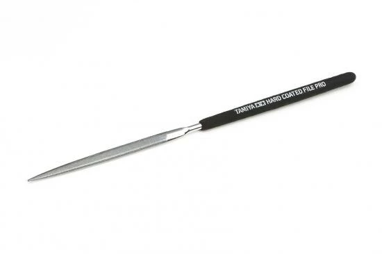 This durable and precision-made file is perfect for shaping both hard materials such as metal, carbon fiber, and FRP, and softer materials such as normal plastic parts. It features a chrome coating which helps prevent the teeth from clogging with shavings. It has superb durability, lasting up to 3-6 times longer than standard steel files. This versatile half-round file joins flat (Item 74106) and round (Item 74107) products in the Tamiya line-up.