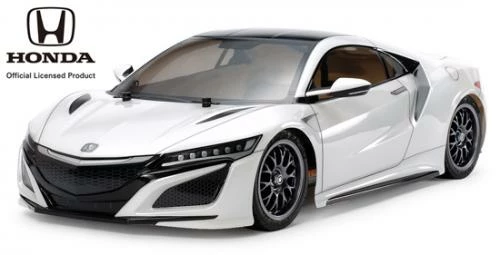 This is a R/C model assembly kit recreating the form of the outstanding new NSX super sports car. The included polycarbonate body is lightweight and durable, and captures the aerodynamically-styled NSX silhouette with aplomb. Stickers are included to recreate markings on the car, including the distinctive “Jewel Eye” 6-lamp headlights, window frames and air intake mesh. The model runs on the adaptable TT-02 chassis, a beginner friendly unit with tuning potential!