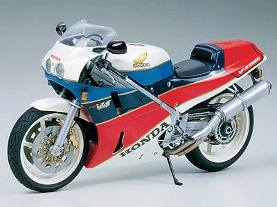 Honda’s release of their limited production, road-going, “works racer” VFR750R made headlines in the motorcycle scene in 1987. The VFR750R is a street-legal counterpart of the formidable RVF750 endurance racer which displayed remarkable potential in the world endurance championships. This bike follows the concept seen in the RVF750, including the use of space-age technology and components such as titanium, carbon-fiber, kevlar, and magnesium. It betters the earlier bikes by a wide margin. The VFR750R also uses a twin-spar aluminum box frame, Pro-Arm (rear swing arm), and a center-lock hub rear wheel. These superlative features and the RVF’s racing reputation have made it a collector’s item even before the first unit was off the production line. The 748cc, liquid cooled, V4 cylinder 16 valve engine has been kept compact to keep the VFR’s overall dimensions very close to the current 500cc Grand Prix racers, for a minimum frontal area. Further, this motorcycle departs from the typical Japanese mass-production practice by using a great deal of human labor on each unit, such as the FRP cowling and windscreen being laid up by hand. The Honda VFR750R is one potent package and has been designed to be very competitive on racing tracks in stock form, yet remain street legal. It will remain a desirable and elusive high performance bike for years to come.