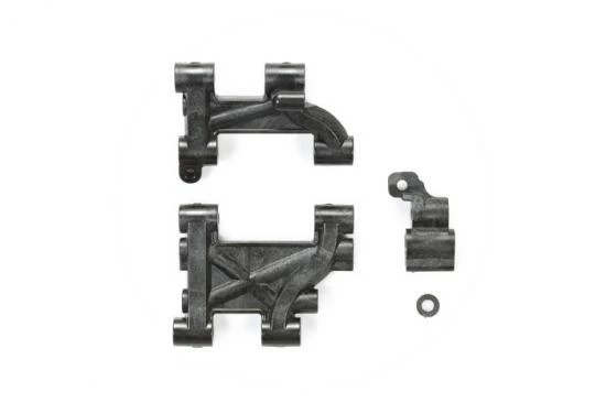 These are suspension arms for the Tamiya M-chassis M-05 Version II. They are made of carbon fiber reinforced plastic. The stock suspension arms are made of fiberglass reinforced plastic. Compared to the stock arms, carbon reinforced plastic offers greater rigidity. Under high grip conditions higher rigidity suspension arms will improve handling as well as provide crisp steering response.