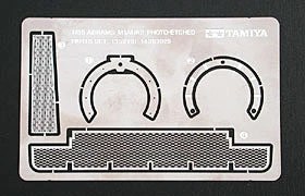 Introducing a photo-etched parts set to add extra detail to the 1/35 M1 Abrams series of tanks. Set includes photo-etched parts for the upper hull grille, machine gun mount rail around the loader fs hatch, and bustle rack on the hull rear (to replace nylon mesh). Can be used with the recently released M1A2 Abrams Operation Iraqi Freedom (Item No. 35269), and M1A1 Abrams (Item No. 35156) and M1A1 Abrams w/Mine Plow (Item No. 35158). About 90mm X 60mm.