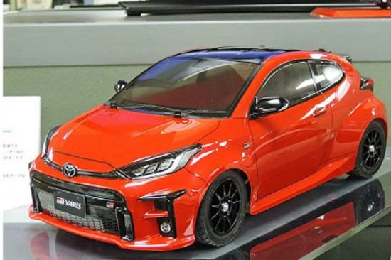 Announced in 2020, this 4WD sports car boasts a compact three-door hatchback body. It features different exciting grades: the high power RZ and the high performance RZ, the RC competition spec, and the FF layout RS model. All are paired with the GR-FOUR sports 4WD system and a 272hp 1.6-liter 3-cylinder engine. This R/C model assembly kit captures such features the prominent radiator grille, bulging rear fenders and roof rear spoiler, and recreates the powerful body in polycarbonate. The front wheel drive M-05 chassis facilitates a lively drive, and uses black 11-spoke wheels with tires carved with realistic tread patterns.